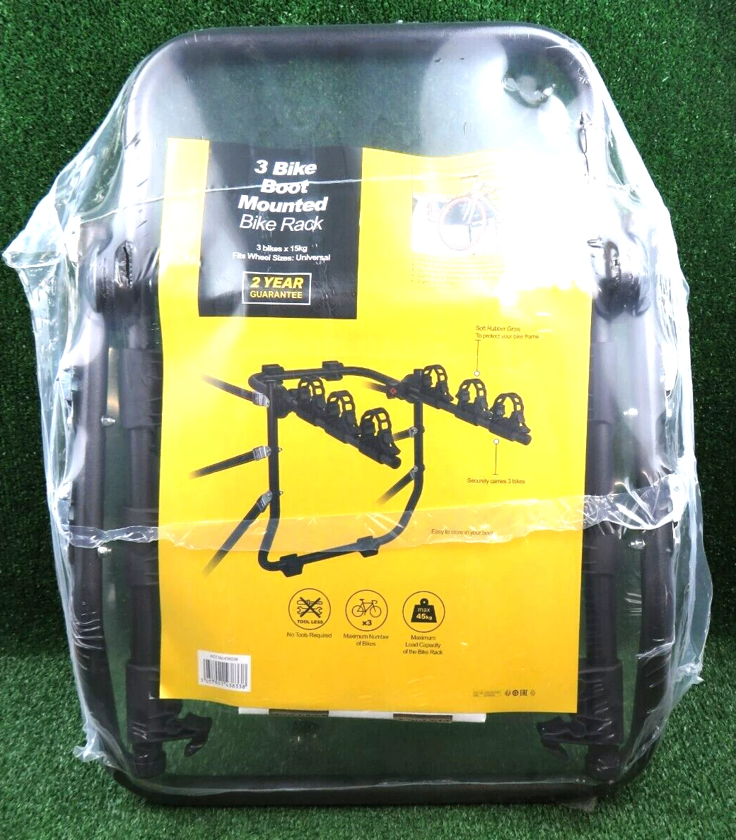 Bring your bikes along on your next adventure with the 3 Bike Rear Mounted Bike Rack. This cycle carrier can support three bikes up to a max weight capacity of 45kg (15kg per bike) and attaches neatly to the rear of your car. Easy-fit individual cycle holders, with anti-scratch rubber inserts Quick and easy install on your car Folds down to save space whilst being stored Carries up to 3 bikes or a total of 46kg Easy to store in your boot No tools required Not suitable for vehicles with a rear spoiler or for electric bikes