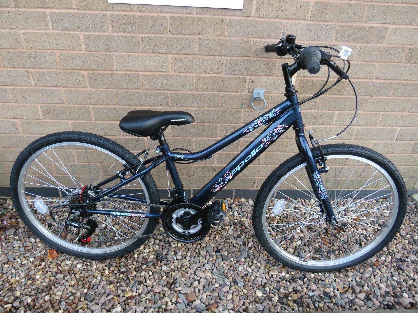 ALL BIKES HAVE A 28 DAY IN HOUSE GUARANTEE ALL BIKES HAVE BEEN SERVICED AND CLEANED IF THEY ARE A USED CYCLE ASK ABOUT POSTAGE OPTION APOLLO KINX MOUNTAIN BIKE 18 SPEED SHIMANO GEARS 24 INCH ALLOY RIMS 12 INCH FRAME TYRE CONDITION….. NEW THIS BIKE IS EX SHOP DISPLAY NEVER RIDDEN… OPENING TIMES FOR COLLECTION MONDAY TO FRIDAY BY APPOINTMENT ONLY SATURDAY 9 AM – 6 PM SUNDAY 11 AM – 4 PM