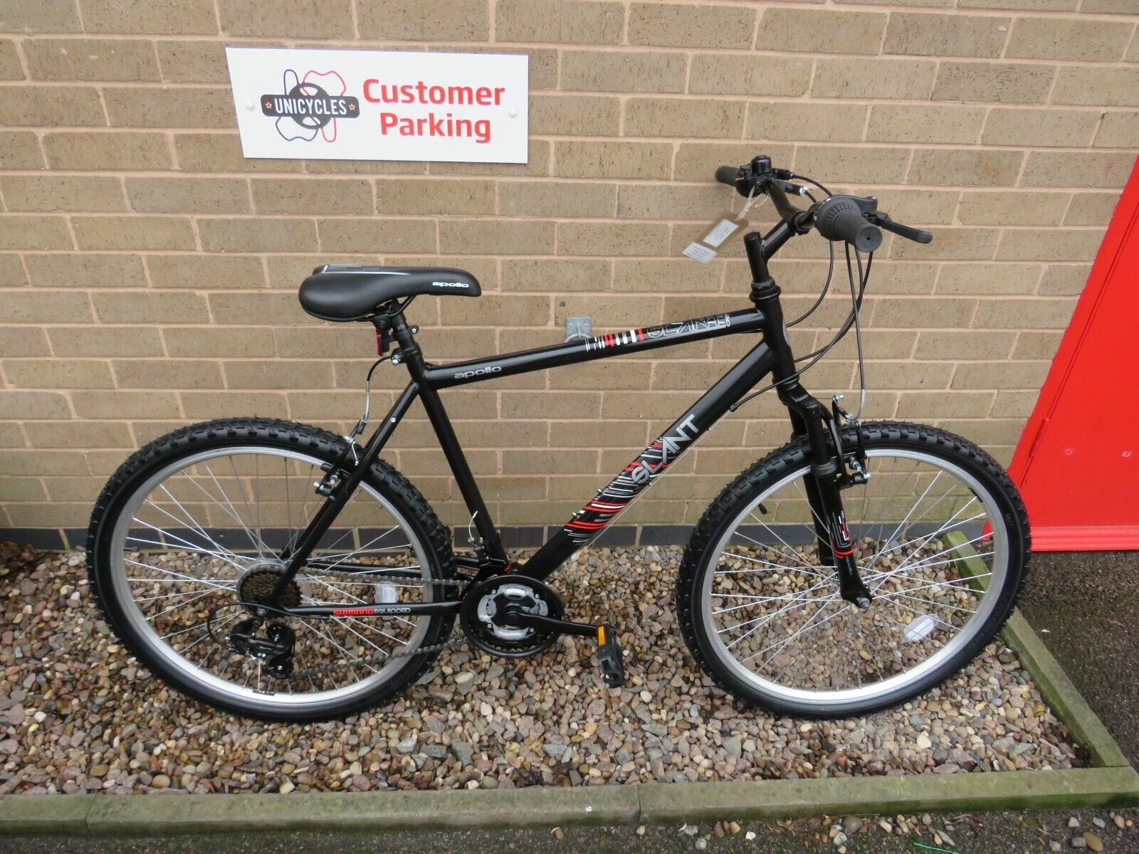 ALL BIKES HAVE BEEN SERVICED AND CLEANED IF USED ALL BIKES HAVE A 28 DAY IN HOUSE GUARANTEE ASK ABOUT POSTAGE OPTION APOLLO SLANT MOUNTAIN BIKE FRONT SUSPENSION 18 SPEED 26 INCH RIMS SHIMANO GEARS 20 INCH LARGE ADULT FRAME TYRE CONDITION … NEW DESCRIPTION OF THIS BIKE…… THIS BIKE IS EX SHOP DISPLAY. NEVER RIDDEN. A FEW MARKS. IF THE BIKE IS A EX DISPLAY IT COULD HAVE A FEW MARKS OR SCRATCHES. WE LIST ALL BIKES AS USED EVEN IF THEY ARE NEW. OPENING TIMES FOR COLLECTION. MONDAY TO FRIDAY BY APPOINTMENT ONLY SATURDAY 9 AM TILL 4 M SUNDAY 11 AM TILL 4 PM WE STOCK USED CYCLES, EX HIRE CYCLES, EX DISPLAY CYCLES, END OF PRODUCTION CYCLES AND RETURNED CYCLES.. THIS IS A GREAT WAY TO GET A NEW CYCLE AT A BARGAIN PRICE..