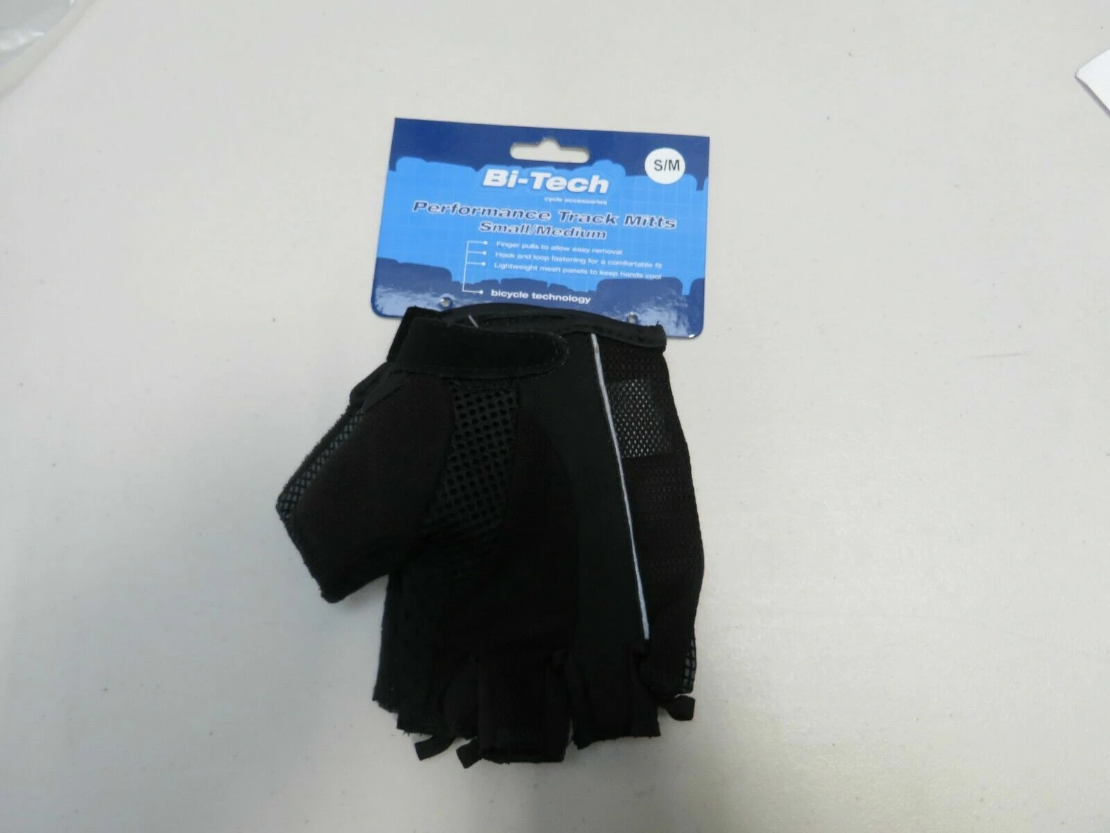 Bi Tech Performance Track Mitts in a size Small to Medium. Featuring adjustable hook and loop fastenings for a comfortable fit. Finger pull to allow easy removal. Lightweight mesh panels help the skin to breathe.