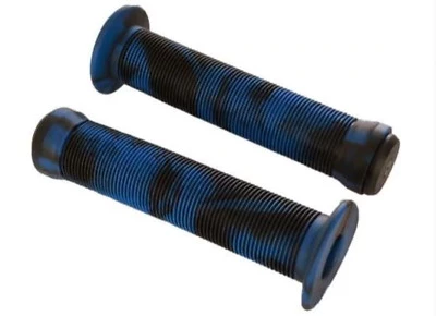 BMX Grips Handlebar Oxford Scooter Grips – Blue/Black Comfy, Soft feel Lovely grips to customise your bike. Marble effect. 145mm long rib grip – can be cut shorter if required. Can be used on any cycle – BMX, MTB or lightweight kids bikes. Incudes lockable bar end plugs