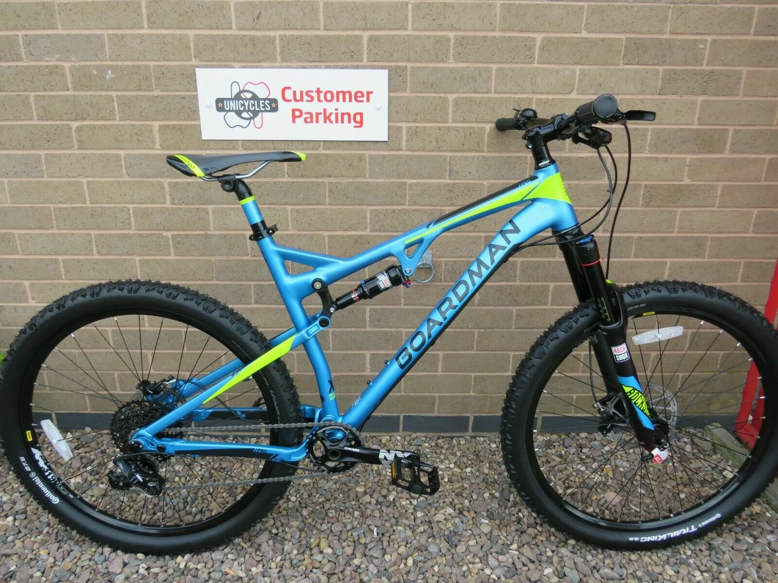 BOARDMAN PRO FS MOUNTAIN BIKE ALUMINIUM FRAME ROCK SHOX PIKE FRONT SUSPENSION ROCK SHOX MONARCH REAR SUSPENSION SRAM GUIDE R HYDRAULIC DISC BRAKES 11 SPEED SRAM NX GEARS SRAM NX CRANK SET SRAM NX RAPID FIRE THUMB SHIFTERS 27.5 INCH MAVIC XM 319 RIMS 20 INCH ADULTS FRAME TYRE CONDITION …NEW THIS BIKE IS BRAND NEW EX SHOP DISPLAY NEVER RIDDEN.