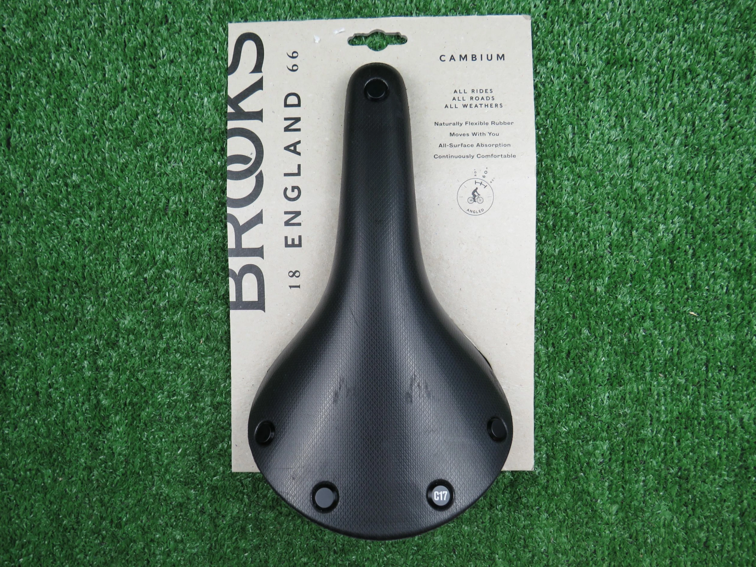 Packaging may be damaged. Minor storage scratches, Product isn't affected The Cambium C17 is a comfortable saddle for bikepacking, commuting, gravel and cycle touring thanks to its durable, vulcanised-rubber top offering flexible performance and all-day weather protection. Suitable for the angled riding position, the C17 will reward you with increased performance on long journeys, flexing for natural comfort. The best bicycle seat for everything from racing to casual adventure, the C17 requires no break-in period and is always ready to ride in any weather and on all roads. Features: Vulcanised Natural Rubber Saddle Top Flexible and Robust touring Saddle Top UV + Abrasion-Resistant Waterproof Nylon Top Nose-piece and Saddle Plate in Fibreglass-Reinforced Nylon Durable, Anodised Aluminium Rivets Tubular Steel Rails