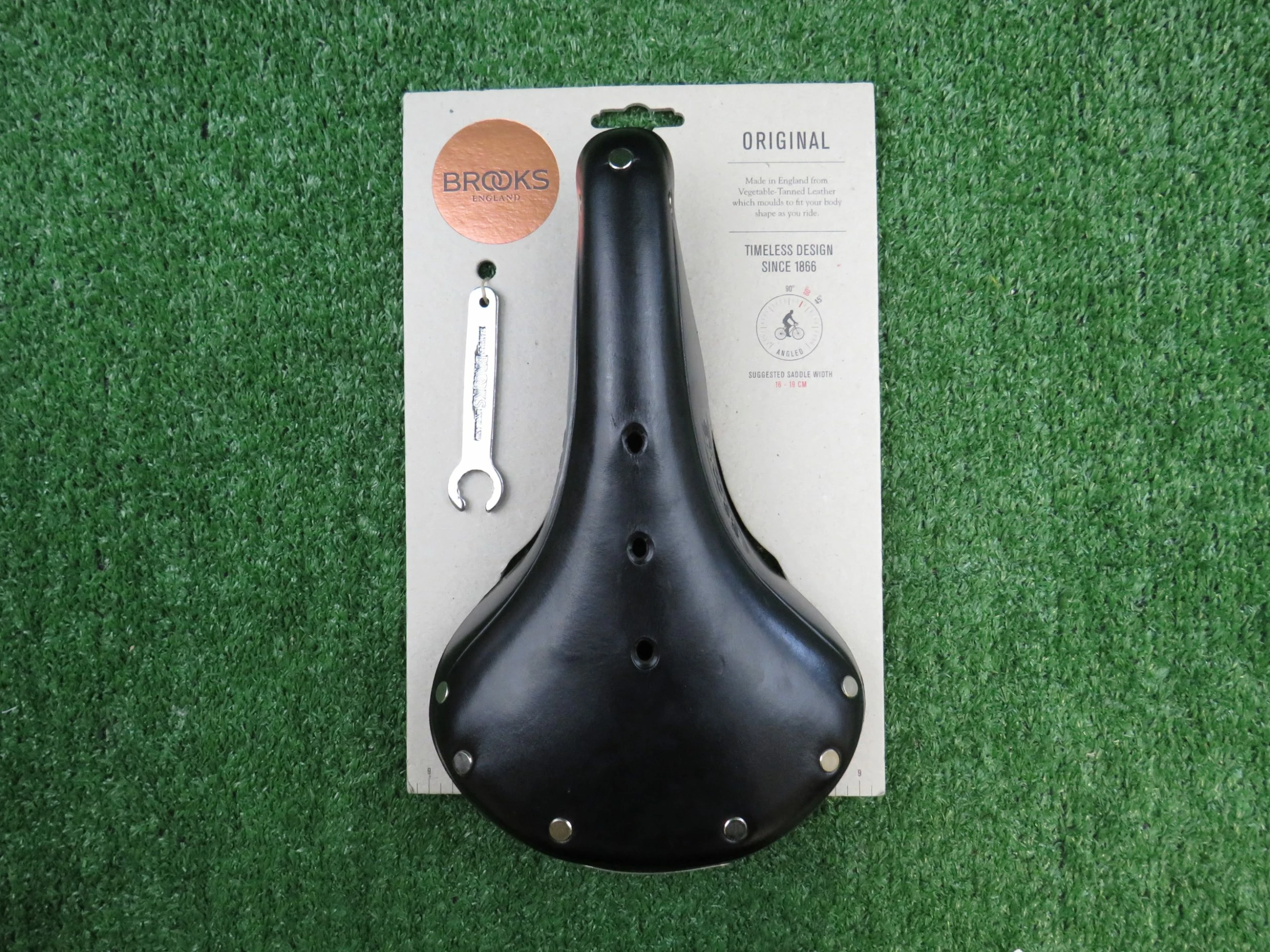 New Packaging May Be Damaged, Product Isn't Affected This Steel Saddle from Brooks England has been serving cyclist for over a century. Perfect for long-distance cycling or training, it is both comfortable and durable. The ideal upgrade for any keen cyclist looking for a timeless quality saddle Features: Material of rails: Steel Type of riding: Commuter, City Riding, Road, Bikepacking Stiffness/Flex: Shapes over time Padding material: Vegetable tanned leather top Brooks Spanner And 2.5ml Leather Dressing Included Length: 275mm Width: 175mm Height: 65mm Weight: 520g