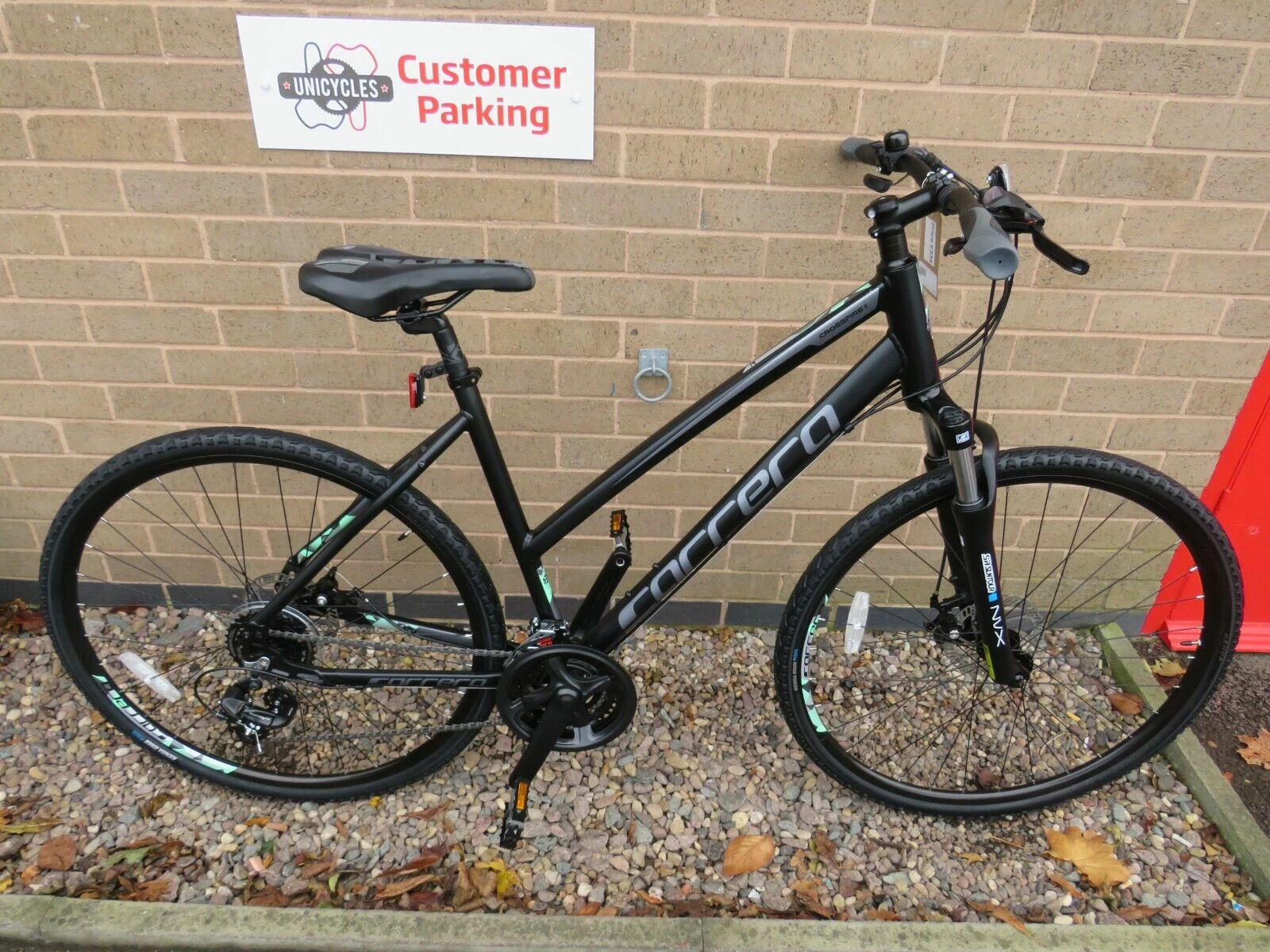 CARRERA CROSSFIRE 2 HYBRID BIKE ALUMINIUM FRAME SUNTOUR FRONT SUSPENSION DISC BRAKES 24 SPEED SHIMANO GEARS SHIMANO RAPID FIRE THUMB SHIFTERS 700C RIMS 20 INCH ADULTS FRAME TYRE CONDITION…. NEW THIS BIKE IS NEW EX DISPLAY NEVER RIDDEN. COULPE SMALL MARKS.