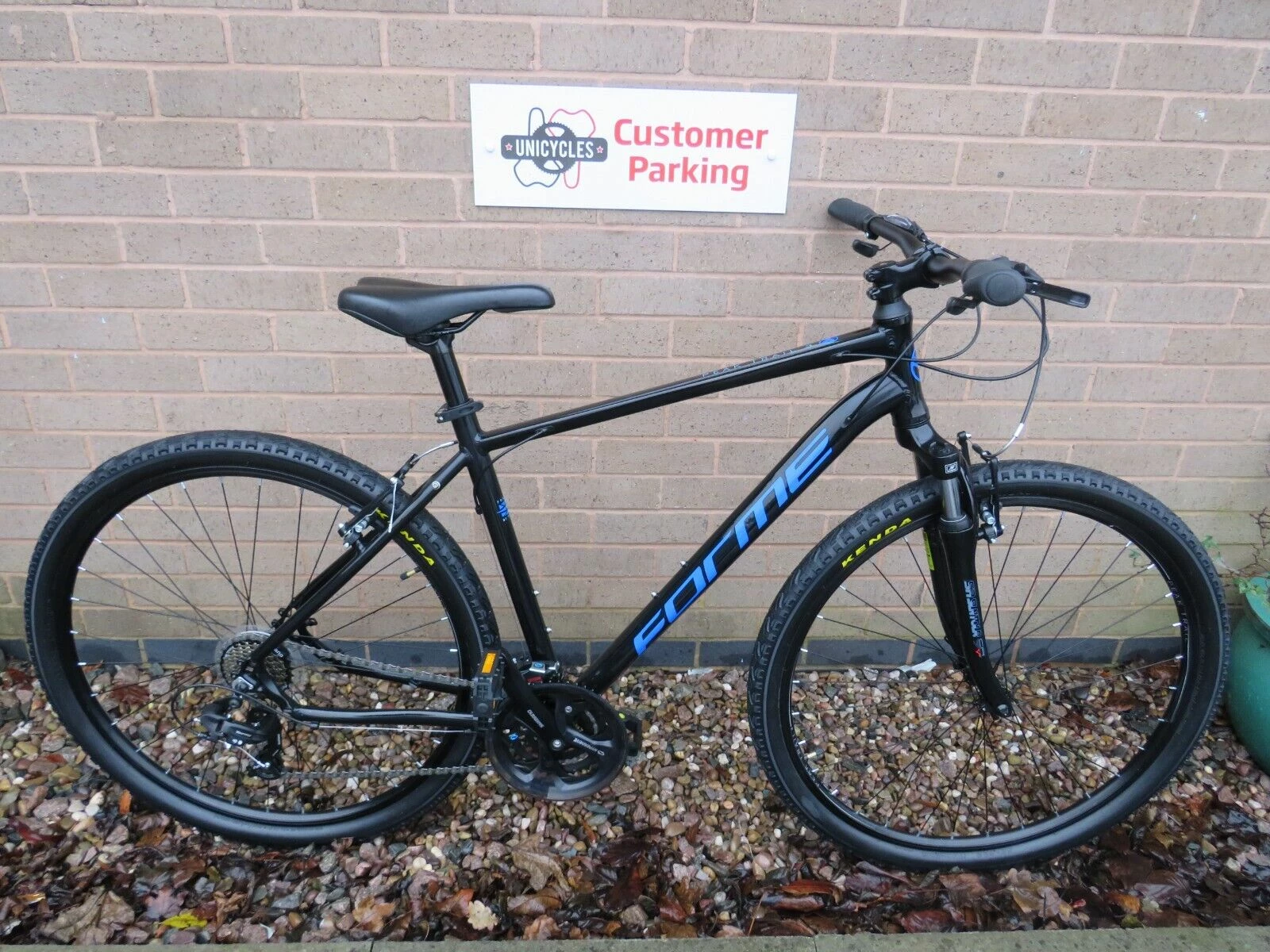 FORME PEAK TRAIL 3 HYBRID BIKE ALUMINIUM FRAME SUNTOUR FRONT SUSPENSION 21 SPEED SHIMANO GEARS SHIMANO RAPID FIRE THUMB SHIFTERS 700C RIMS 18 INCH MEDIUM ADULTS FRAME TYRE CONDITION….NEW THIS BIKE IS NEW EX DISPLAY NEVER RIDDEN BUT SADLY A FEW SMALL MARKS.