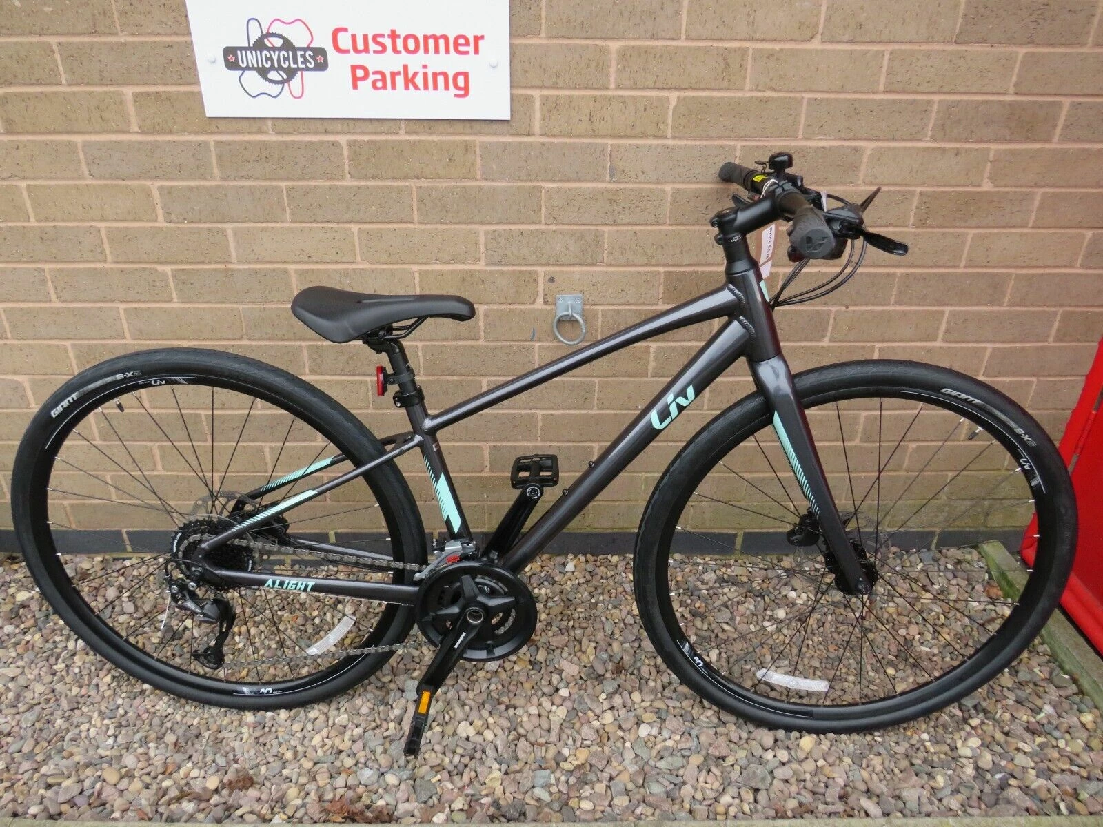 LIV ALIGHT 1 SPORTS HYBRID BIKE ALUMINIUM FRAME 18 SPEED TEKTRO HYDRAULIC DISC BRAKES SHIMANO ALIVIO GEARS SHIMANO ALIVIO RAPID FIRE THUMB SHIFTERS 700C RIMS 14.5 INCH ADULTS FRAME TYRE CONDITION…. NEW THIS BIKE IS A EX DISPLAY MODEL. NEVER RIDDEN COUPLE SMALL MARKS.