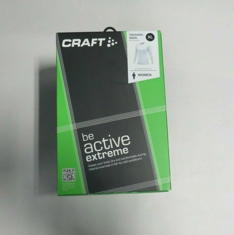 CRAFT BE ACTIVE EXTREME WHITE LONG-SLEEVED T-SHIRT WOMENS Colour: White Size: XL DIRT ON TEE – SEE PICTURES PACKAGING MAY BE DAMAGED The Craft Active Extreme series was developed to make athletes lighter, faster and better. The Active Extreme from Craft is made from Coolmax Air Fabric which helps to regulate the wearer’s body temperature by allowing cool air to flow through the fabric as well as releasing warmer air, leaving the wearer feeling cool and comfortable as they train. The lightweight fabric construction helps to prevent the wearer from feeling distracted and weighed down. The 3D Ergonomic Cut of the garment allows for a snug yet comfortable fit which helps to prevent the wearer feeling as though their movements are being restricted. Excellent Moisture Management is also offered by this top, meaning it draws excess sweat and moisture away from the skin and moves it to outer layers of the fabric where it can be easily and quickly evaporated. The ergonomic flat seams sit comfortably against the skin whilst mesh inserts at hot stops allow cool air to flow throughout the garment.