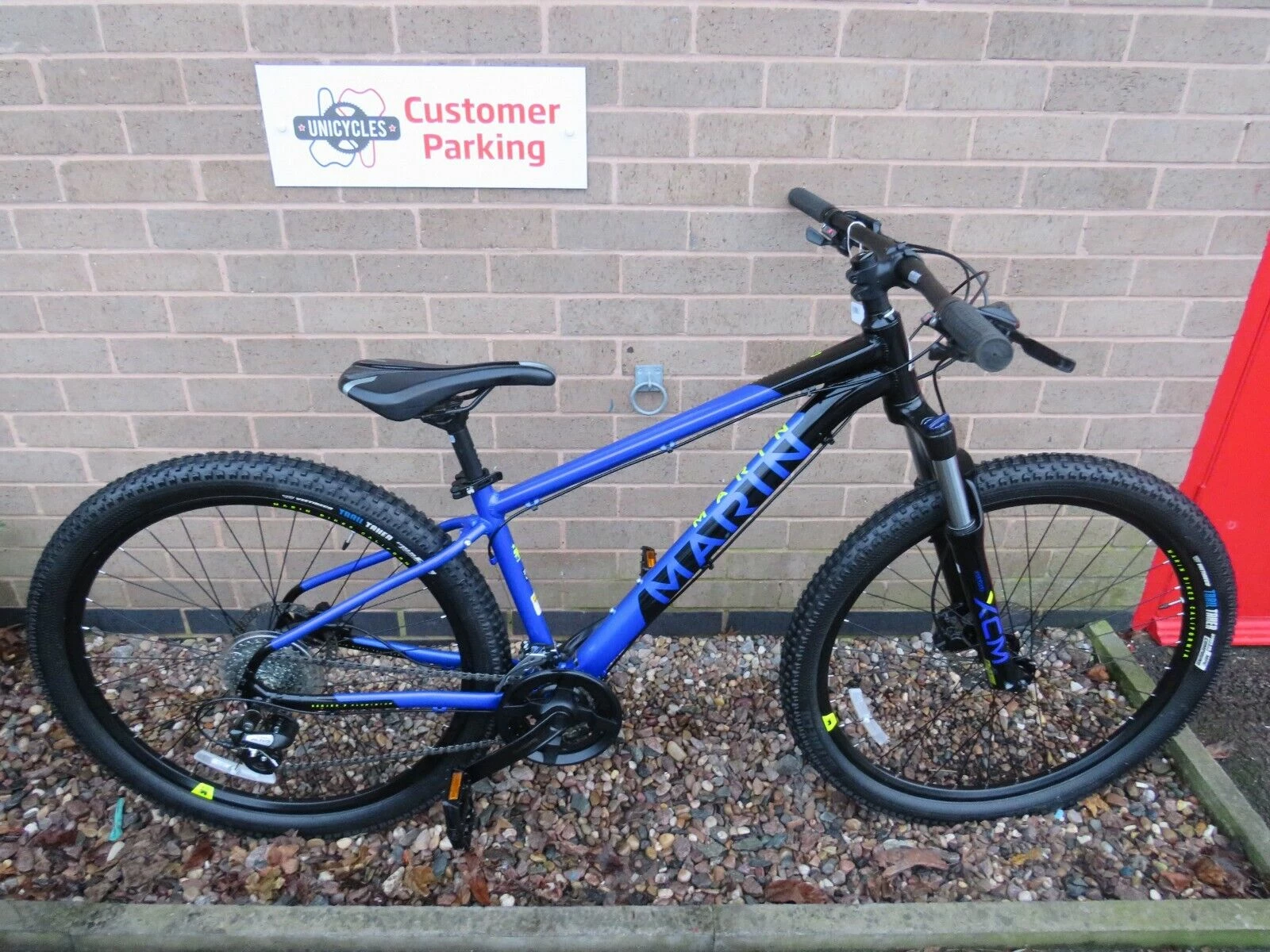 MARIN BOBCAT TRAIL 3 MOUNTAIN BIKE ALUMINIUM FRAME SUNTOUR FRONT SUSPENSION WITH LOCK OUT 16 SPEED TEKTRO HYDRAULIC DISC BRAKES SHIMANO ALTUS GEARS SHIMANO RAPID FIRE THUMB SHIFTER 27.5 INCH RIMS 15 INCH SMALL ADULTS FRAME TYRE CONDITION….GOOD USED THIS USED BIKE HAS HARDLY BEEN RIDDEN FROM NEW JUST A FEW MARKS.