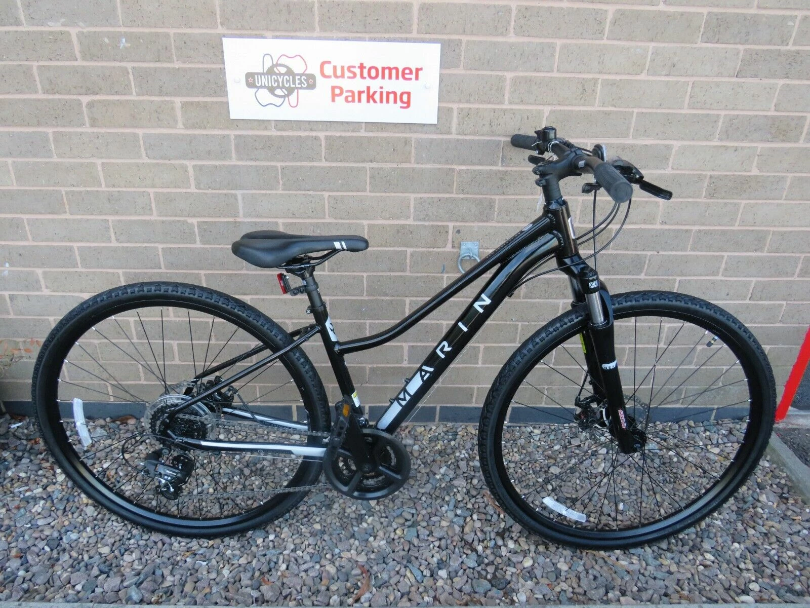 MARIN SAN ANSELMO 1 LADIES HYBRID BIKE ALUMINIUM FRAME SUNTOUR FRONT SUSPENSION 24 SPEED SHIMANO GEARS SHIMANO RAPID FIRE THUMB SHIFTERS 700C RIMS 15 INCH ADULTS FRAME TYRE CONDITION….AS NEW THIS BIKE IS EX SHOP DEMO SO HAS BEEN RIDDEN IN A CAR PARK
