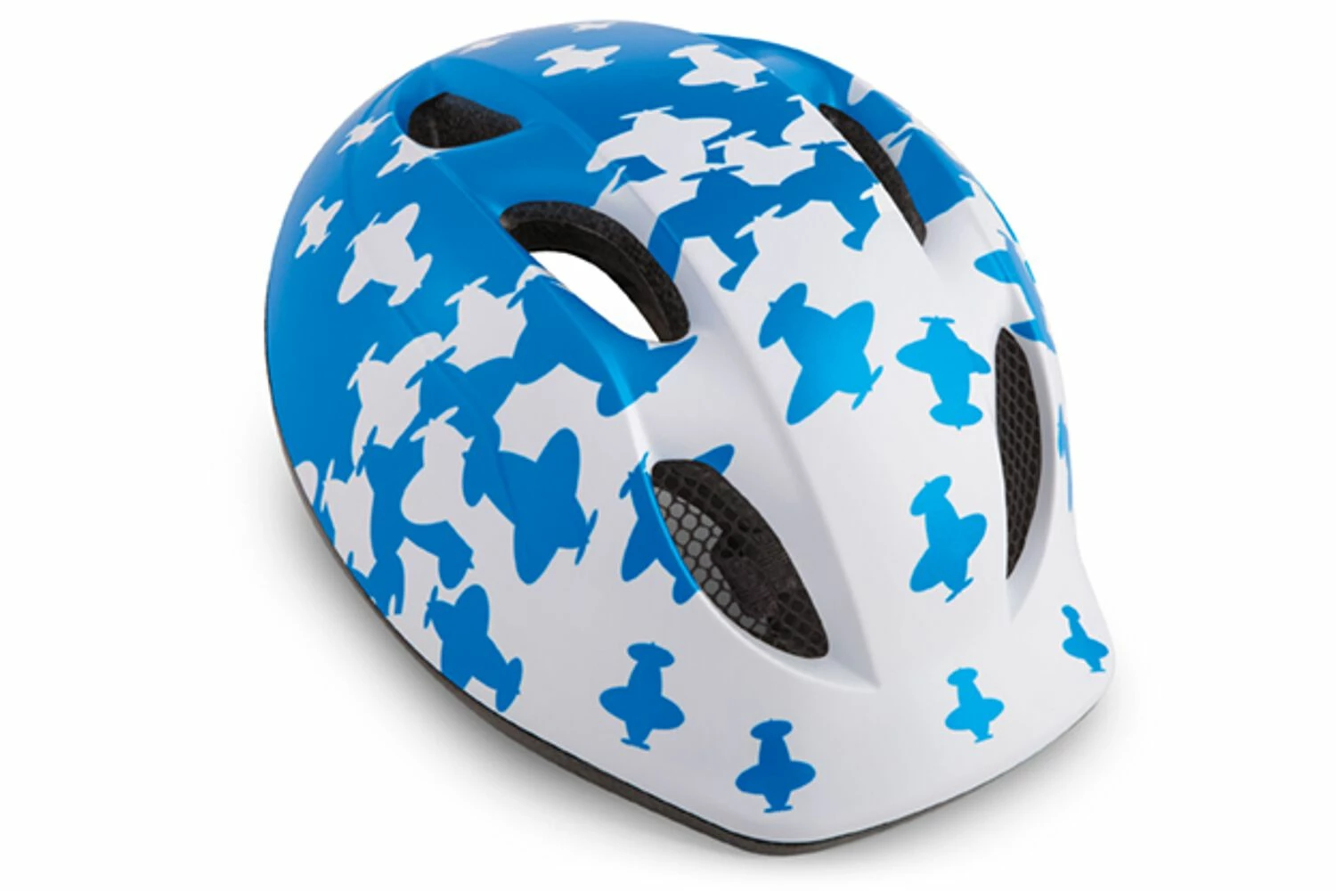 MET's Buddy kids helmet range is designed with a well-proportioned child's shape which strikes the right balance between safety, comfort and designs they will love. These MET Buddy child cycling helmets have sleek curved lines and designs which have become timeless classics. A well-proportioned shape which is reassuringly safe. With their sleek curved lines, the Buddy and Super Buddy kids helmet designs have become timeless classics. There's solid volume in the twin shell Bimbi plus helmet design which holds features like an integrated visor, anti-pinch buckle and anti-insect nets. Uni-size to fit head circumference 46-53cm, ages 2-4 years old Twin Shell