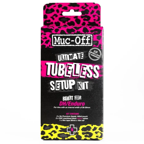 Muc Off – Tubeless Set Up Kit – Enduro/DH/Trail DH / Enduro Kit Includes: 2 x 44mm tubeless valves 1 x 30mm / 10M Rim Tape 2 x No Puncture Hassle Tubeless Sealant