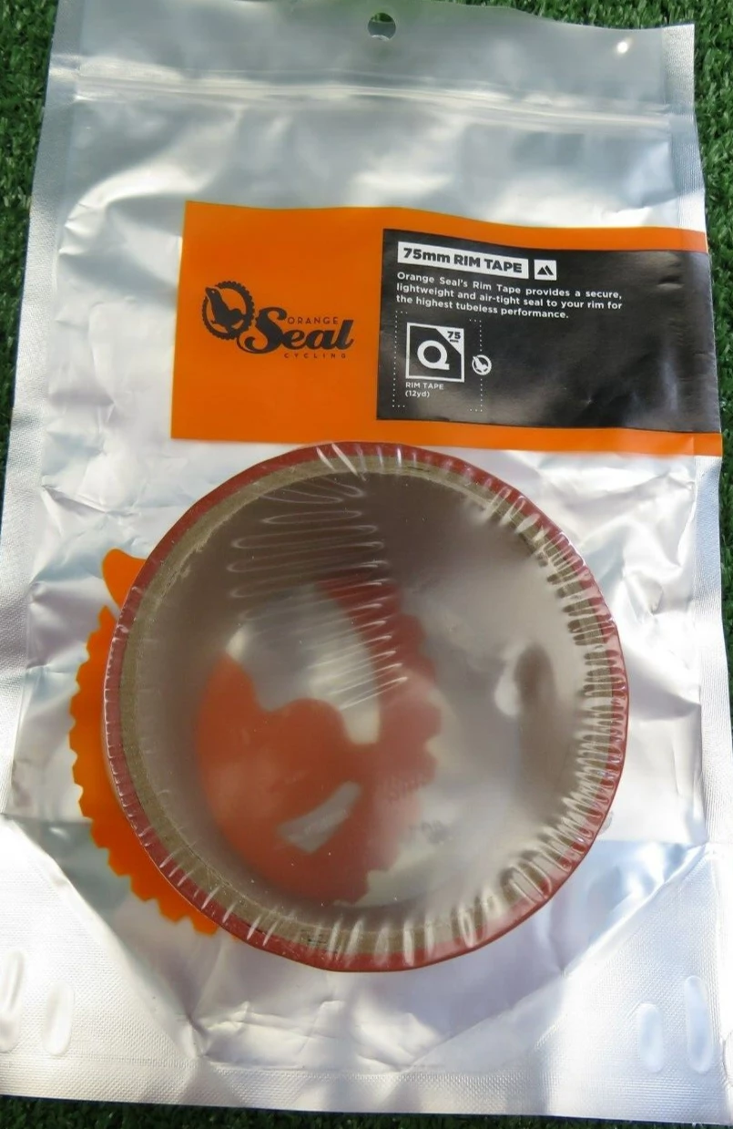 Orange Seal – 75mm Rim Tape 12yd – Genuine The elasticity of the tape allows greater flexibility in fitting different types of rims and form factors. Provides a secure, lightweight and air-tight seal to your rim. new but packaging maybe damaged. Product isn't affected