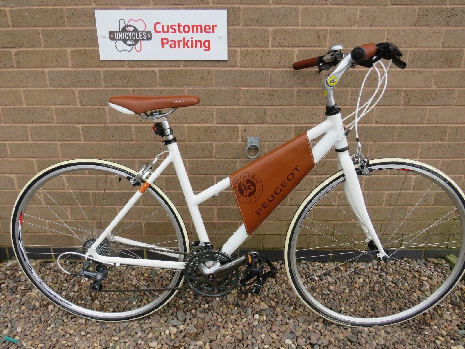 PEUGEOT ROLAND GARROS SPORTS HYBRID BIKE ALUMINIUM FRAME 24 SPEED SHIMANO CLARIS GEARS SHIMANO RAPID FIRE THUMB SHIFTERS 700C RIMS 50 CM FRAME TYRE CONDITION . NEW THIS BIKE IS NEW EX DISPLAY, COUPLE SMALL MARKS.
