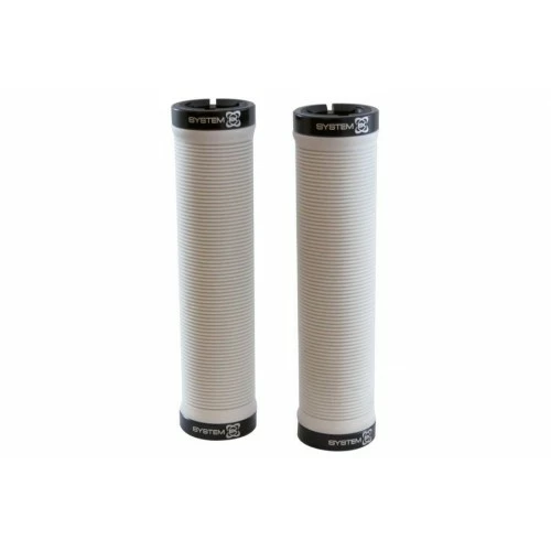 SYSTEM EX Lock-On Grips Colour: White DUAL DENSITY COMPOUND ULTRA SECURE TWIN LOCK-ON CLAMPS 130MM LONG FITS MTB, BMX & SCOOTER HANDLEBARS… COMES AS GRIP SET WITH LOCK ONS AND PLUGINS KIT INCLUDES LOCK-ON SYSTEM GRIPS & COLLARS.