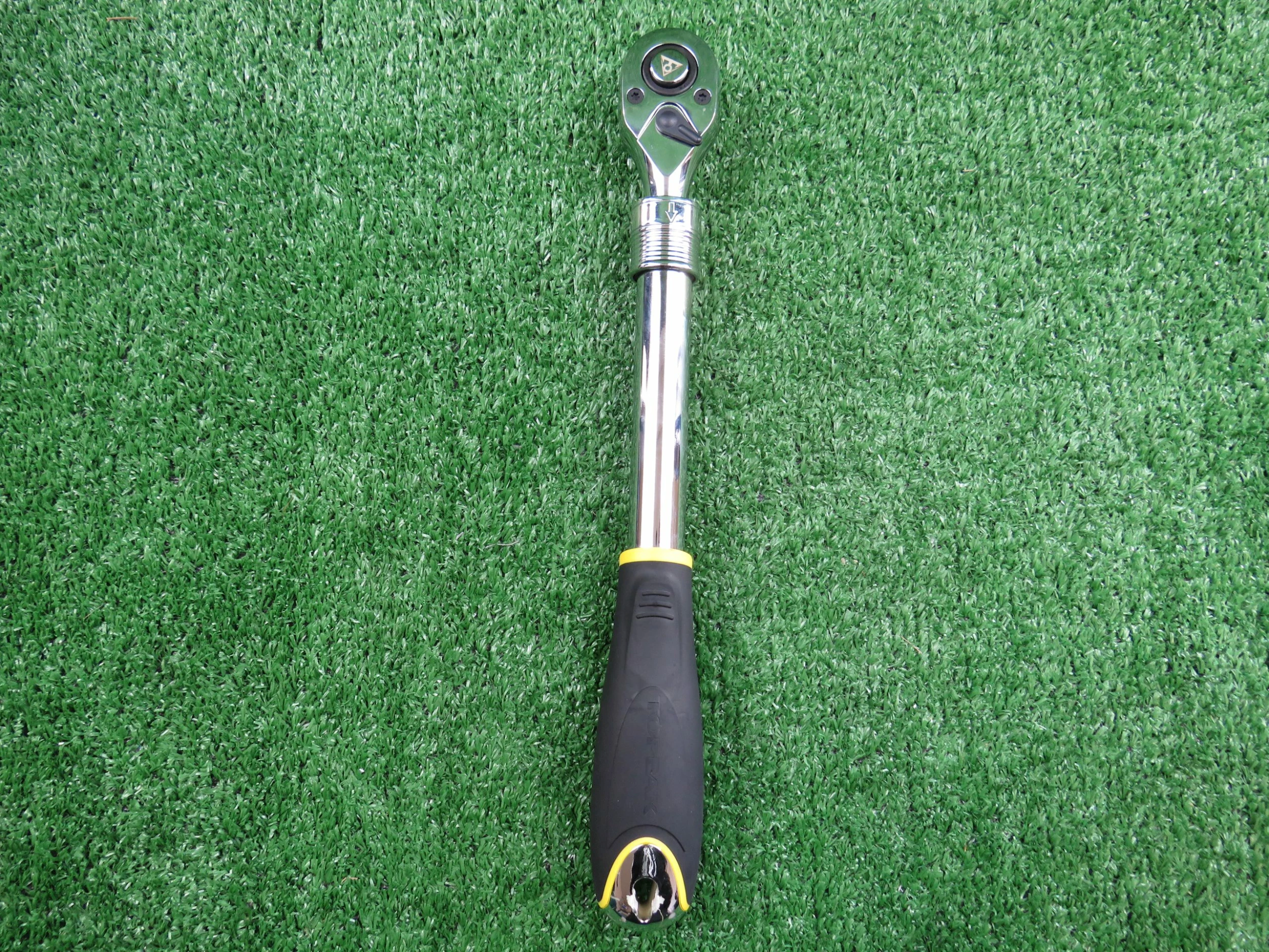 Extendable 1/2″ Drive ratchet with 72-tooth gear action. Locks at 34cm and 45cm lengths Hardened Steel Switchable to left or right hand drive 34-48x4x4cm 946g Ex-Display One Bike Show No Packaging, Handle is also chipped