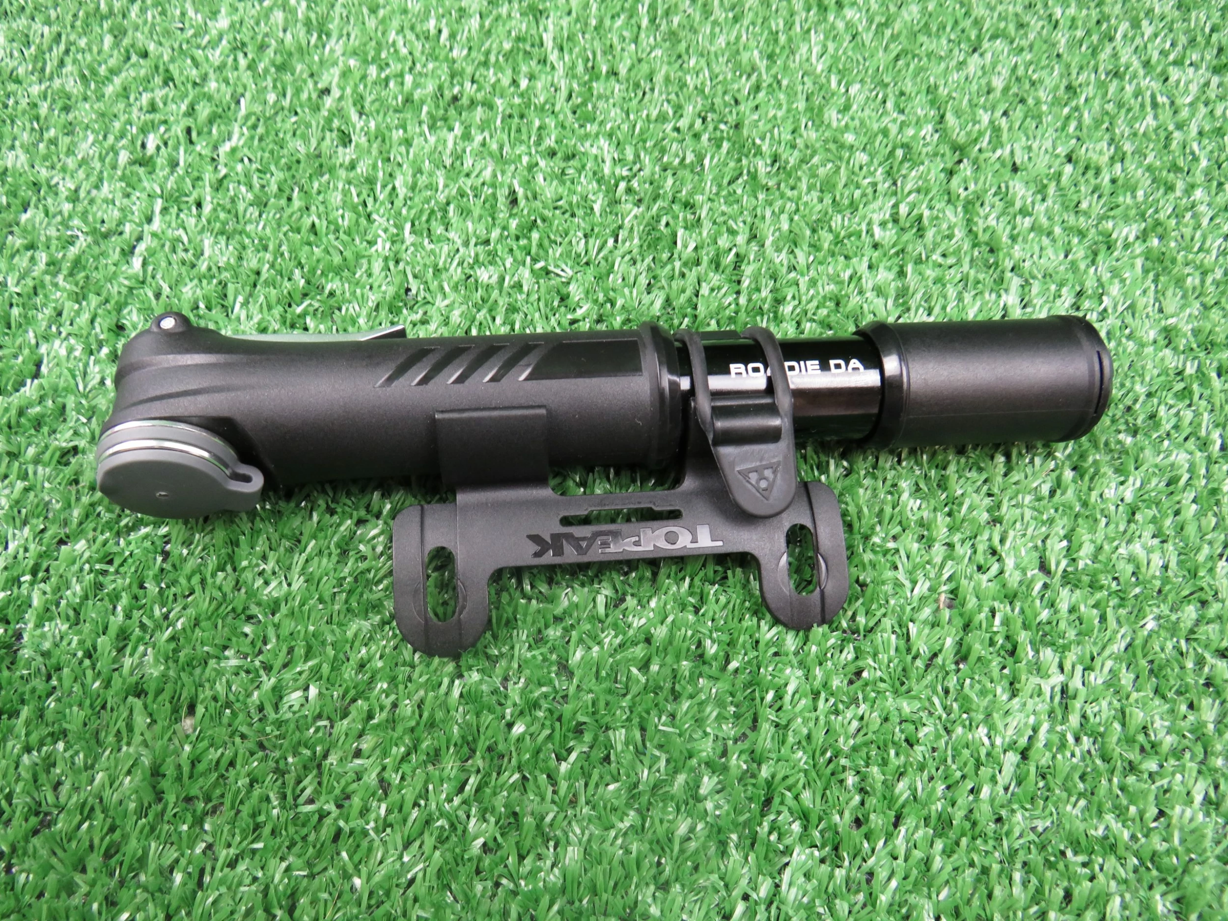 Topeak Roadie DA Mini Hand Pump Does not come in original packaging A Dual Action (DA) pump that delivers twice the volume despite fitting in your jersey pocket, the lightest and most compact of th DA Pump series is the Roadie DA. Capable of inflating up to 120 psi, the Roadie DA does so thanks to the pressure created on both the in and out movement of the pump’s handle, doubling the amount of air, while minimising effort. Features: Head: Presta with integrated dust cap Barrel/ Thumb Lock: Aluminium Handle: Plastic Capacity: 120 psi Volume Per Stroke: 36.1 cc (pull + push) Size: 18.3 x 3.2 x 2.8 cm Additional: Dual-action pumping head, Side mount bracket Weight: 95 g / 3.35 oz